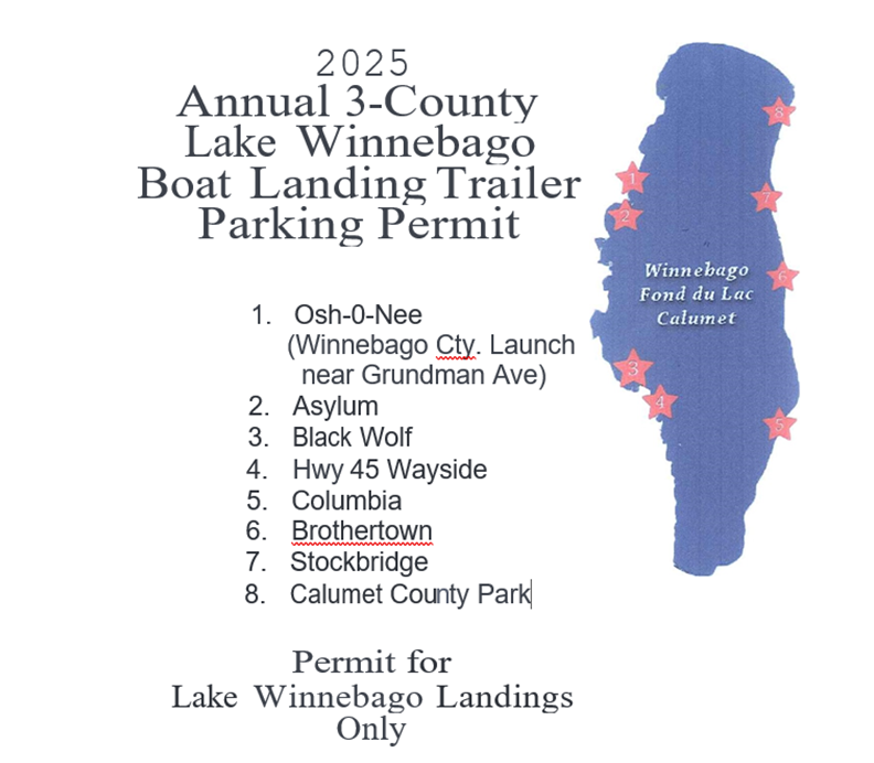 Season passes can also be purchased for use at all three of the Calumet County operated boat launches. There are two season pass options available, the Calumet County seasonal boat permit and the Tri-County seasonal boat permit.